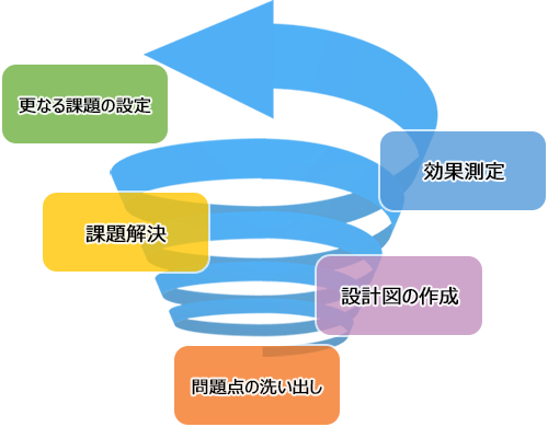 次のステップでは、それら課題や困りごとを解決した結果 "どのような未来を描きたいか" という「設計図」 をご一緒に作り上げます。その設計図を基に正しく課題を解決していきつつ、描いた未来をどれだけ実現できているかの効果測定〜次の課題設定までを、二人三脚でご支援させていただきます。